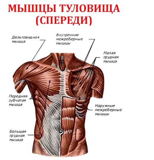 - Мышцы грудной клетки обеспечивают движение грудной клетки, плеча и лопатки, поднимание и опускание рёбер, участвуют в акте дыхания.