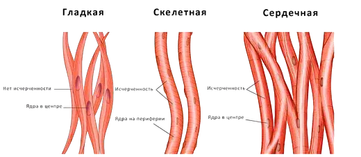 - Гладкие: расположены в стенках внутренних органов (например, кишечника).
